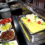 Das West Plaza bietet täglich ein Frühstücksbuffet im Café an. Zu den Speisemöglichkeiten gehört auch das Restaurant Taverna Adonis in der Nähe vom Hotel.